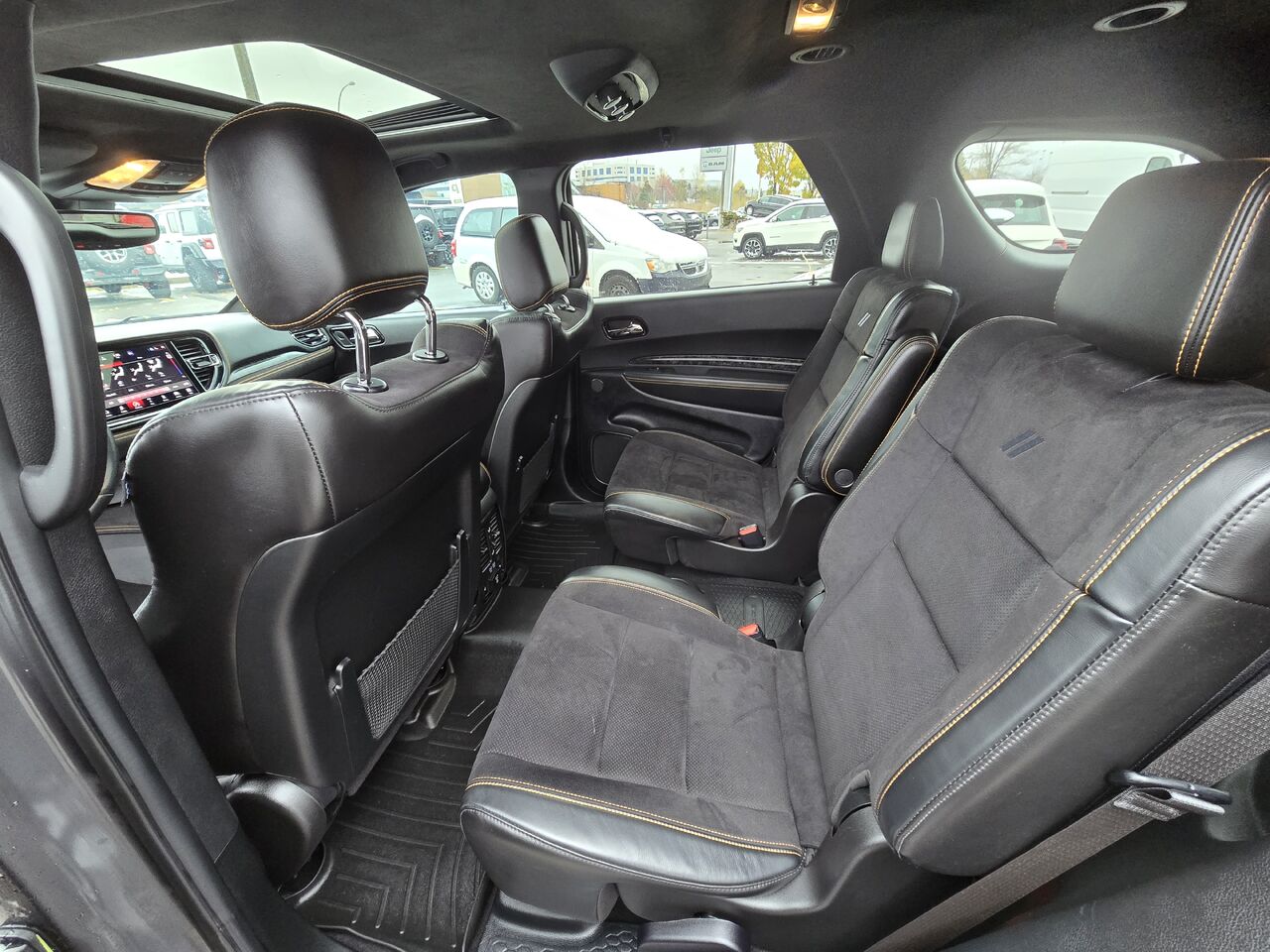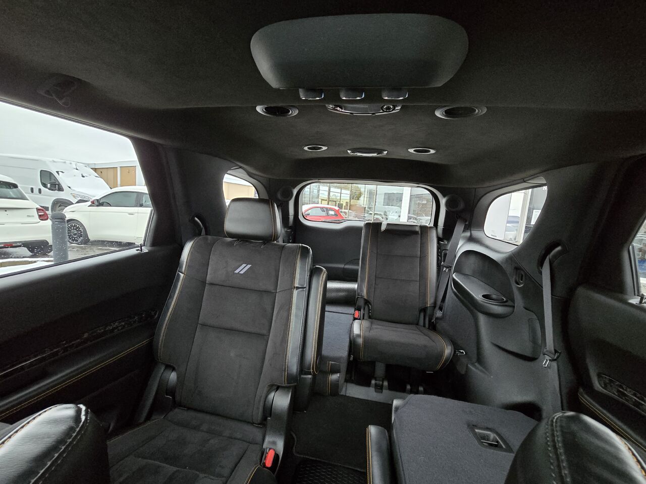 • banquette divisée de 3e rangée fixe rabattable 50/50 en vinyle faisant face à l'avant avec 2 appuie-tête à réglage électrique